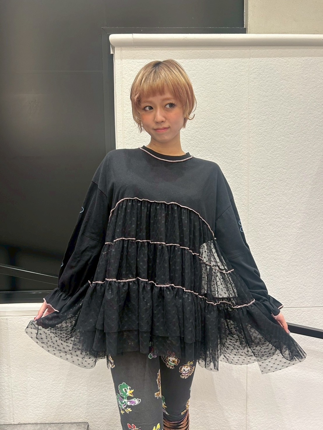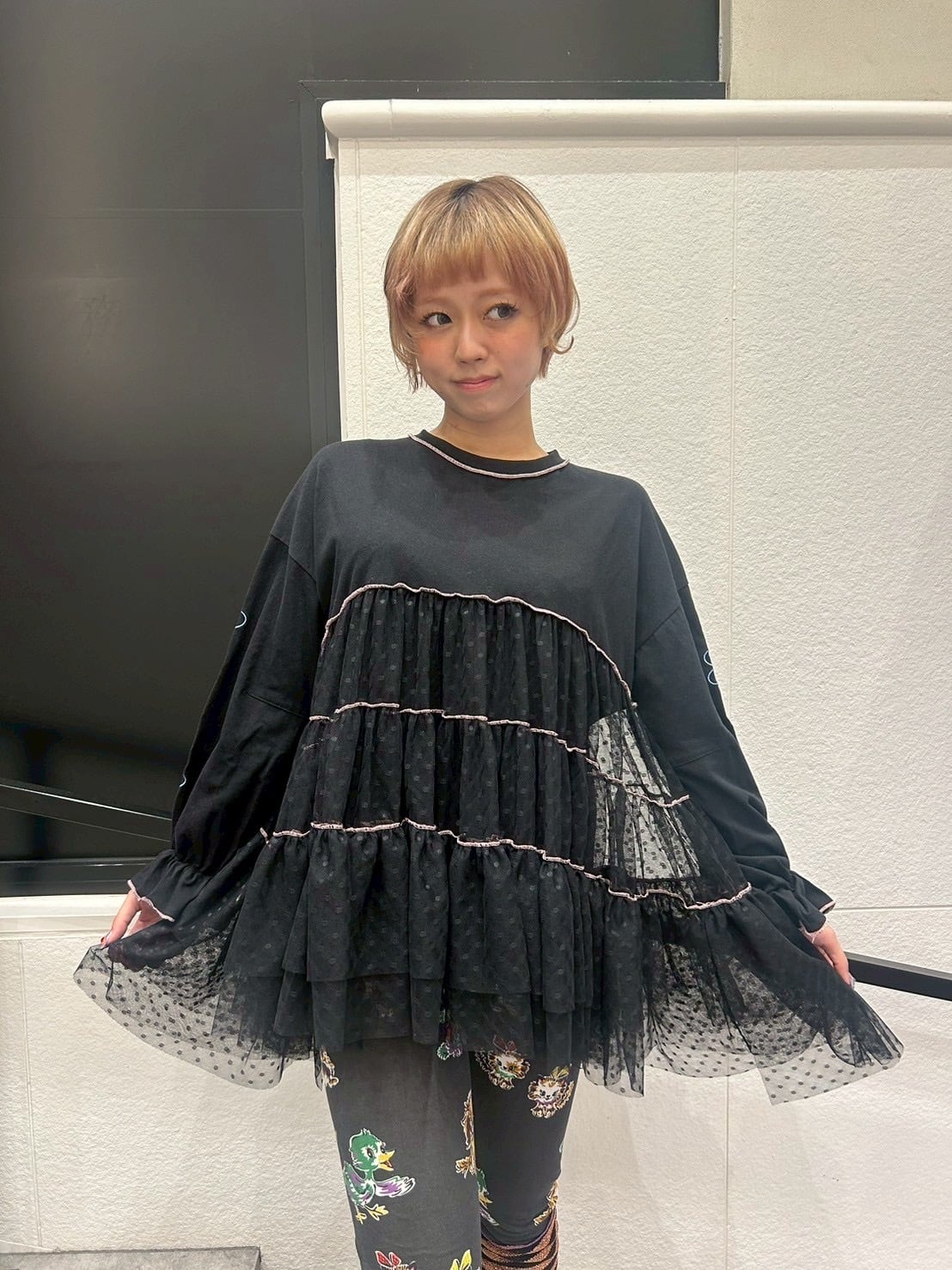 ⚫︎このキティチュニックロンTは、袖に可愛らしいキティとデイジーの刺繍がされたデザインが魅力です。ゆったりとふんわりしたシルエットが特徴で、お出かけにもぴったりのガーリーアイテムです。