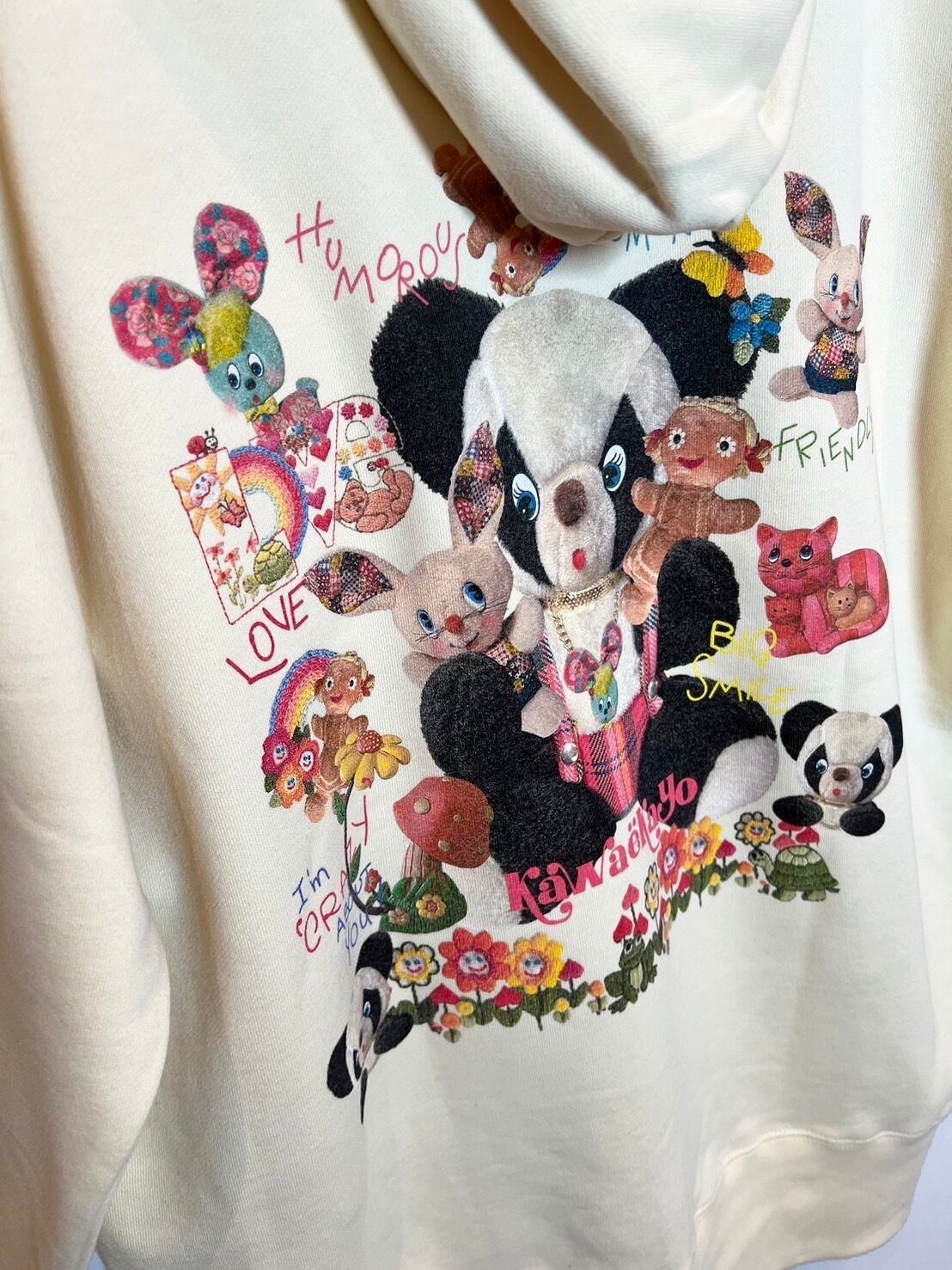 胸にパンダがちょこんといて、バックにも可愛さモリモリな柄の可愛いパーカーJKになります♡