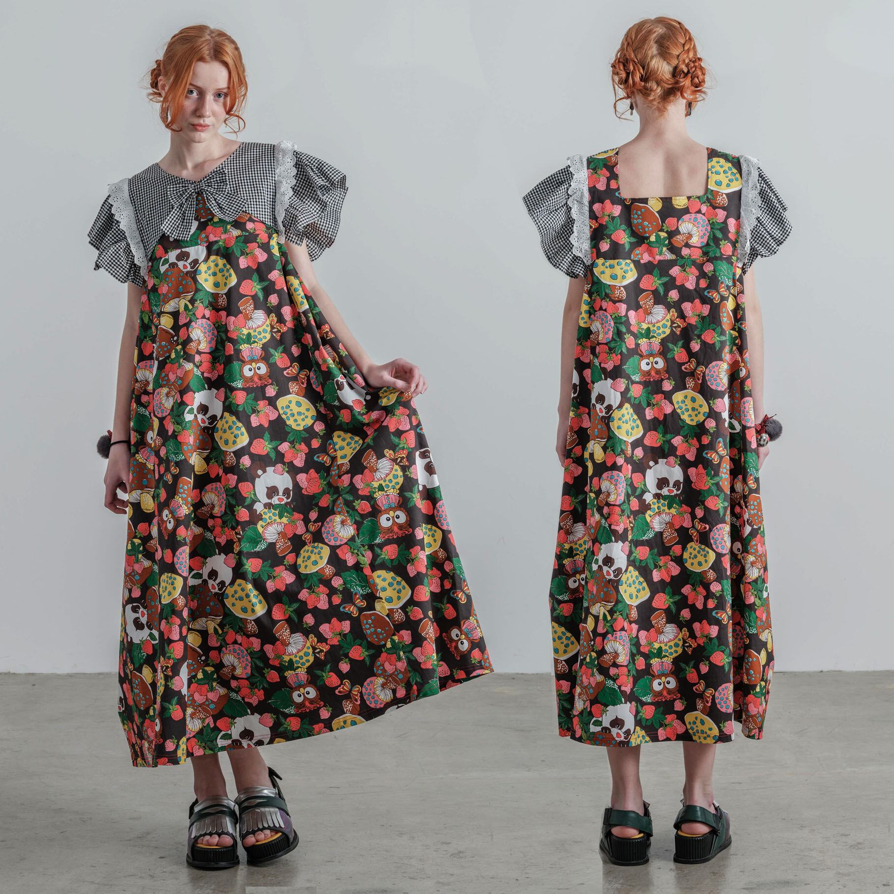 キノコストロベリー柄が映えるワンピース♡前後ろがないので気分次第でどちらを前にして着てもらっても良い2WAYの仕様になってます。どんなシーンにもぴったりなCUTEなアイテムです♡
