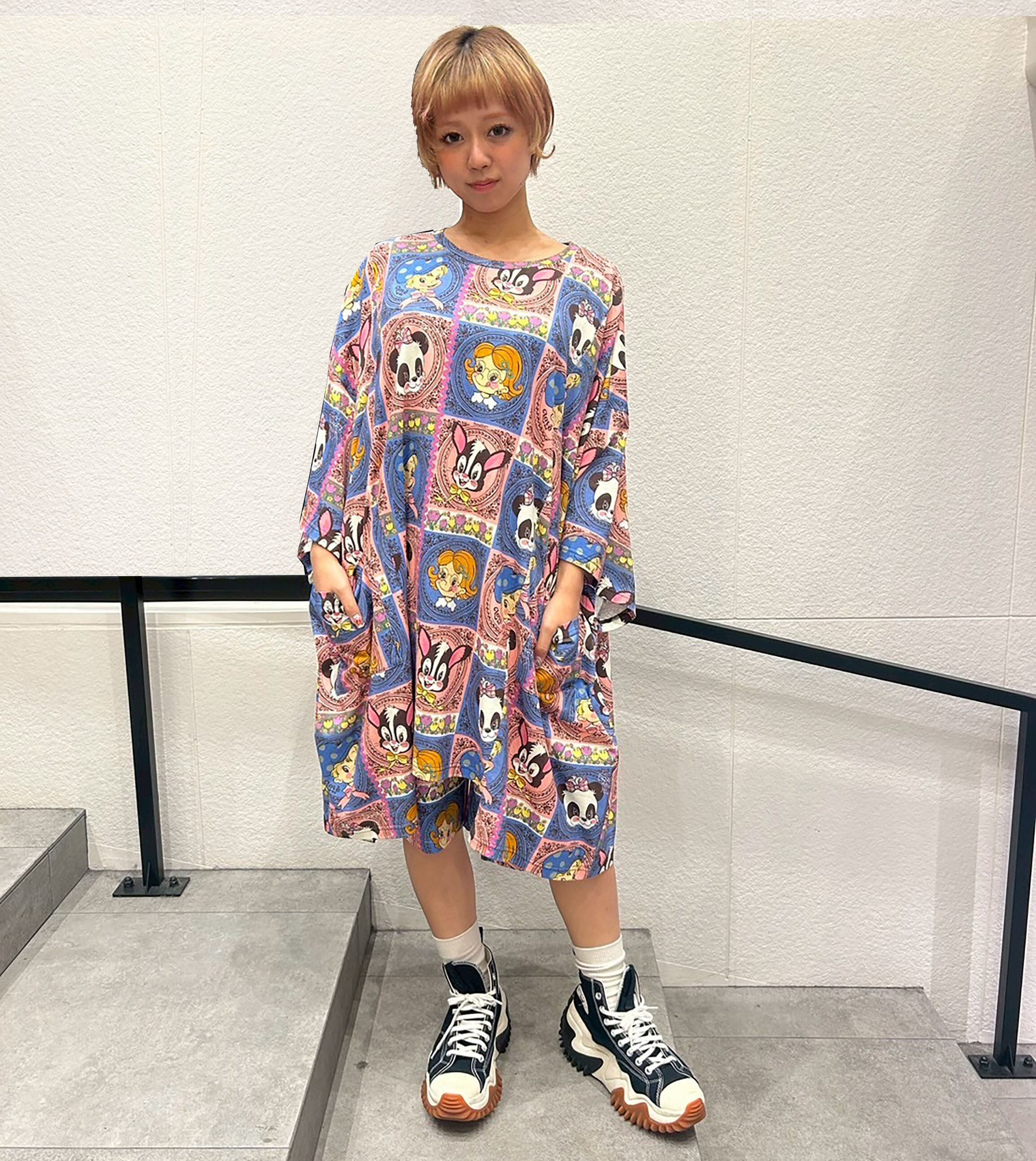ssで人気だったシルエットで総柄カットソーで仕上げました!!かなりゆったりとしたBigシルエットになりますので1枚でカジュアルに着ていただけるサイズ感で,ポケットもついたOPになります♡シーズンレスで活躍すること間違いなしの一着です!