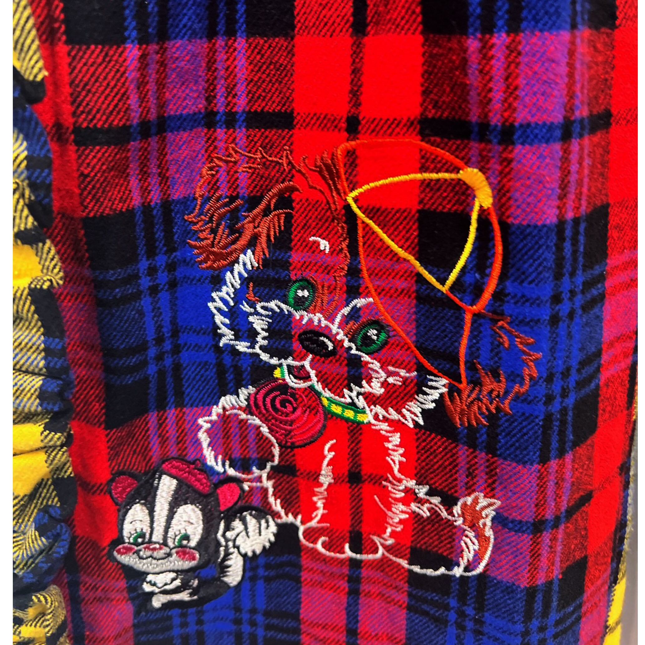 チェック素材を使用した魅力的なデザインのビッグサイズパンツ!ゆったりとしたシルエットで、リラックスした着心地が楽しめます♡サイドのフリル、ハートのポケットレトロな刺繍カワイイがいっぱい詰まったパンツになります♡